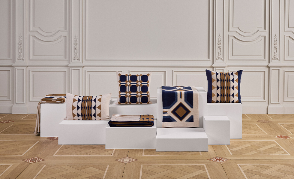Designer Tara Bernerd and Frette have debuted Disrupting Architecture, a collection of cushions and throws featuring graphic motifs that nod to various periods, like Modernism and Deco, and iconic architectural detailing. Colorways range from navy, tan, and cream to bright lime and cream in honor of Bernerd’s friend and mentor, Richard Rogers.